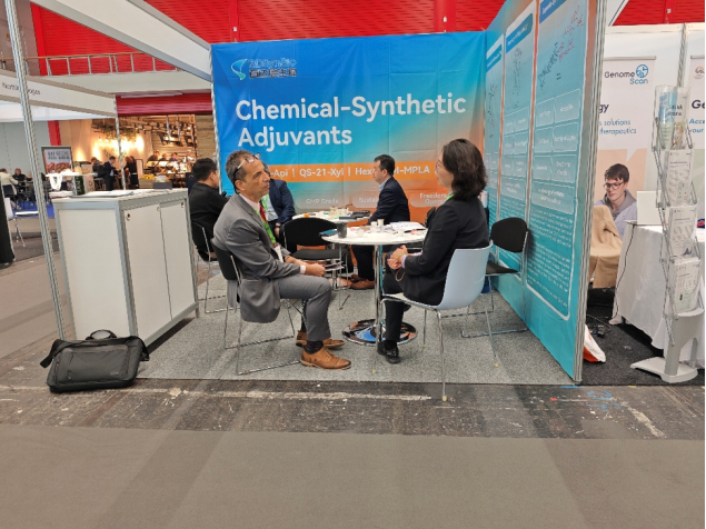 展会期间,团队与来自世界各地的访客就疫苗佐剂的技术趋势、供应链挑战及合作机遇等议题展开了充分的洽谈。现场交流气氛热烈,许多业内人士对我们能够提供高纯度、GMP级别且具备供应安全保障的合成佐剂解决方案表示了高度认可与合作意向。